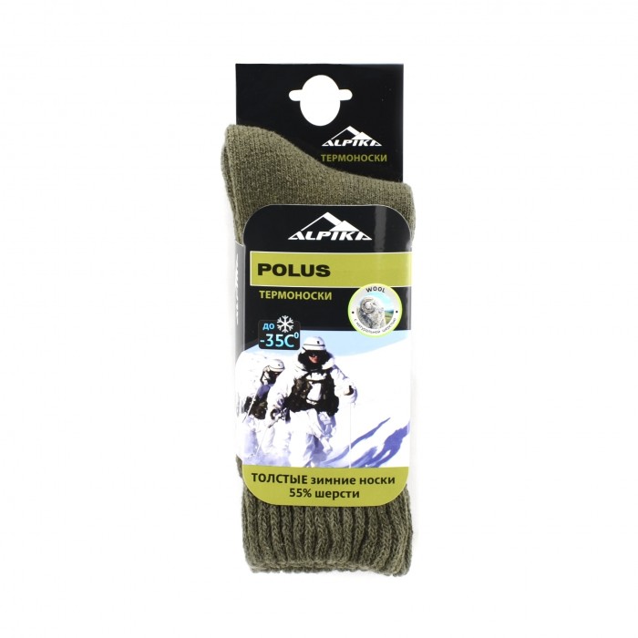 Термоноски "Alpika" Polus на 55% выполнены из шерсти знаменитых на весь мир австралийских мериносов. Трёхслойная махровая вязка обеспечивает им износостойкость и хорошую циркуляцию воздуха, а толстый внутренний слой из шерсти гарантирует сохранение тепла даже в самые сильные морозы. Отлично подходят для зимнего отдыха на природе, охоты, рыбалки, и обеспечивают максимальный комфорт и удобство в течение всего времени эксплуатации.